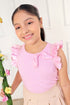 Polo elegante y chic sin mangas, confeccionado en suave 100% Algodón Pima. Destaca por los elegantes volantes de Seda colocados en todo el contorno de la manga, adornados con una delicada cinta de Organza con Strass para un toque de brillo. Un delicado lazo en el pecho complementa el diseño. Disponible en Perla, Negro y Baby Pink. PONA0514
